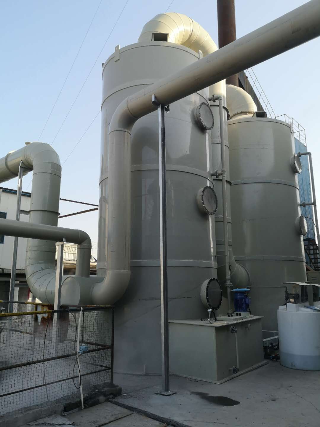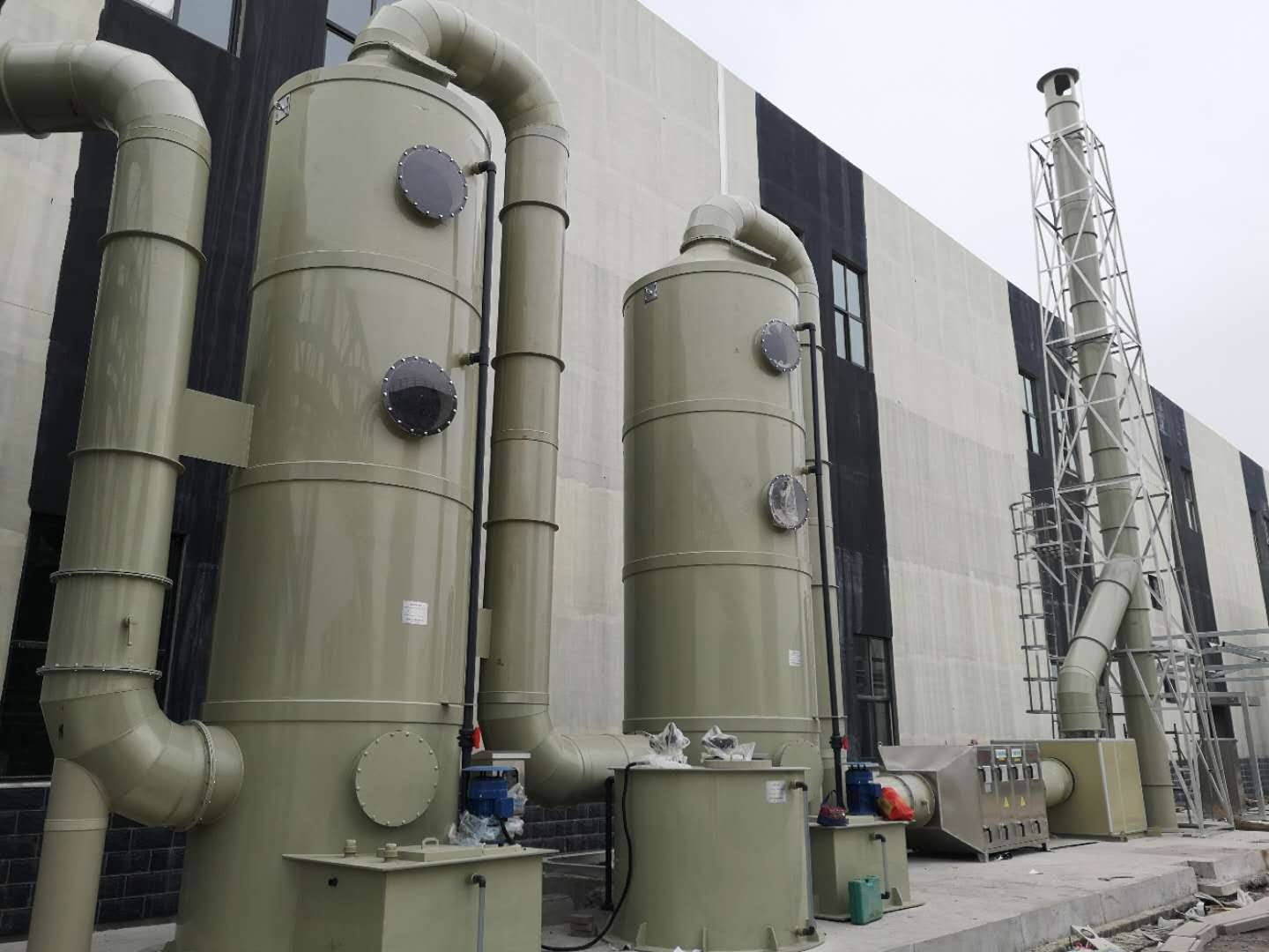 稀釋擴(kuò)散法 原理:將有臭味地氣體通過(guò)煙囪排至大氣,或用無(wú)臭空氣稀釋?zhuān)档蛺撼粑镔|(zhì)濃度以減少臭味。適用范圍:適用于處